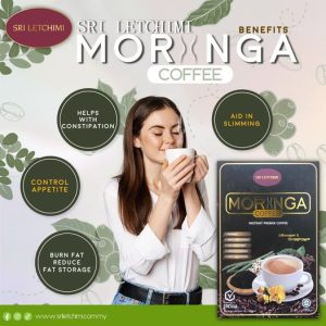 👉  Sri Letchimi’s Moringa Coffee is a powerful blend designed to support weight loss and overall wellness. Packed with ingredients like moringa seed, senna flower, kalonji seed, green coffee extract, chia seed extract, garcinia cambogia, and goat’s milk powder, this coffee helps burn fat, reduce fat storage, boost energy and metabolism, control appetite, and assist with constipation. Each box contains 15 sachets, with 25 grams per sachet. For optimal results, mix one sachet with 150-200ml of hot water and drink it on an empty stomach, unless you’re on medication (in which case, wait at least one hour after taking medication). Suitable for individuals aged 14 and above, this coffee can be consumed by women during their menstrual cycle but is not recommended for pregnant or breastfeeding women, children, or those planning to conceive. People with diabetes should consult a doctor before use.